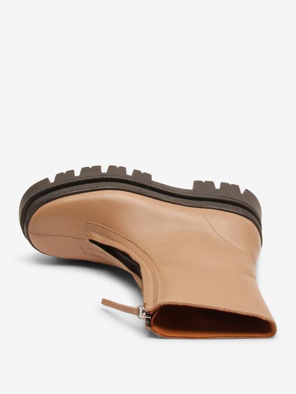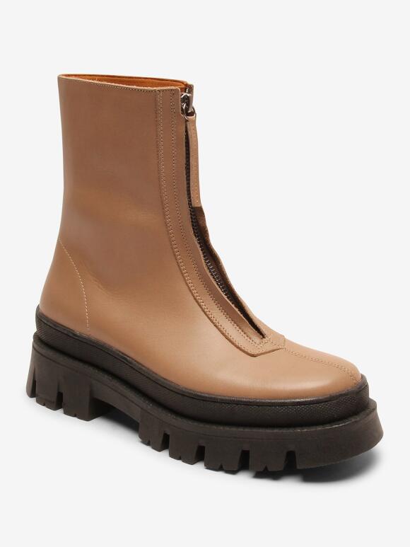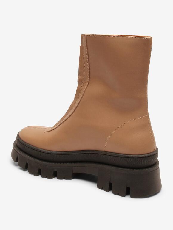 Smukke og alsidige støvler med en chunky sål og lynlås foran. Støvlerne er håndlavede i Portugal af åndbart og naturligt læder. De er foret med silkeblødt vegetabilsk garvet læder, som er 100% bionedbrydeligt og 100% fri for krom, kemikalier og metaller. Den bløde og komfortable memory foam indsål former sig naturligt efter foden og yder personlig komfort.