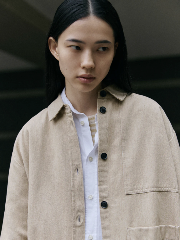 En afslappet, work-wear inspireret skjorte fremstillet af økologisk bomuldstwilli en riflet vævning, der giver en let tekstureret overflade.
