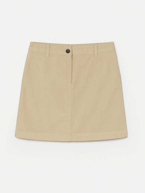The soft yet sporty texture of the fine-wale cotton corduroy enhances the skirt's minimal lines.