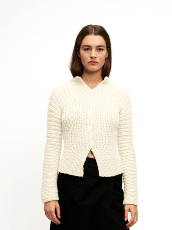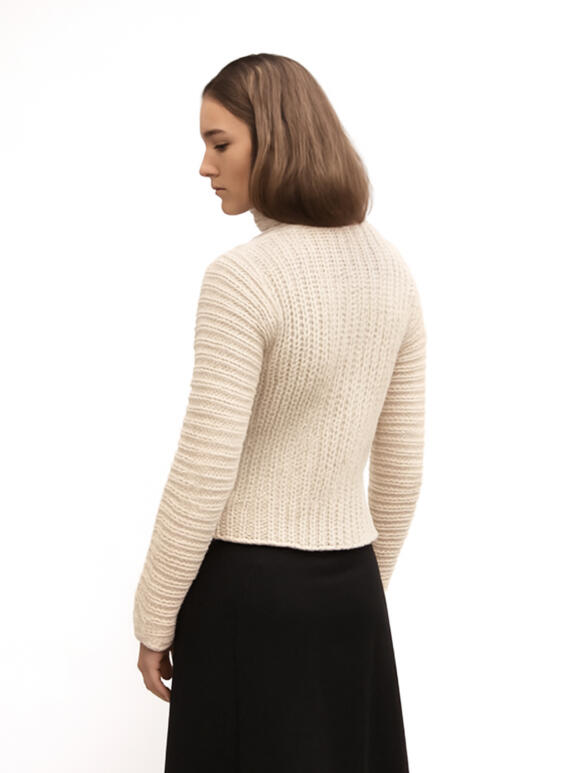 strikket i et stykke uden sidesømme - skøn strik der sidder til- med store trykknapper-