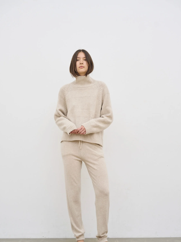 Smuk og luksuriøs sweater i ren, blødt cashmere med flot sømandsstrik - et fantastisk stykke håndværk til din tidløse garderobe. MEA-sweateren har høj hals, raglanærmer og en bred, tyk rib ved alle kanter. Sweateren er perfekt til hverdag stylet med dine yndlingsjeans, en klassisk nederdel eller et par casual bomuld/hør-bukser. Ønsker du at forkæle dig selv, eller en du holder af, med det ultimative sæt luksus hyggetøj, så kan du kombinere den med et par af vores bløde cashmere-bukser.