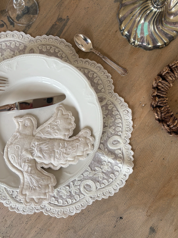 This collection is inspired by memories of gentle evenings, candlelit tables, and the timeless charm of vintage linens.